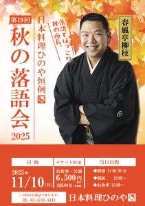 お馴染み、春風亭柳枝様の落語をひのやのお料理とともにお楽しみください。