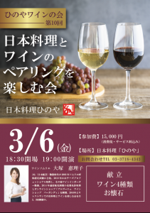 3月6日(金曜日)に第10回「日本料理とワインのペアリングを楽しむ会」を開催致します。